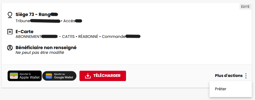 Il est possible de prêter son abonnement pour un match via la carte digitale.