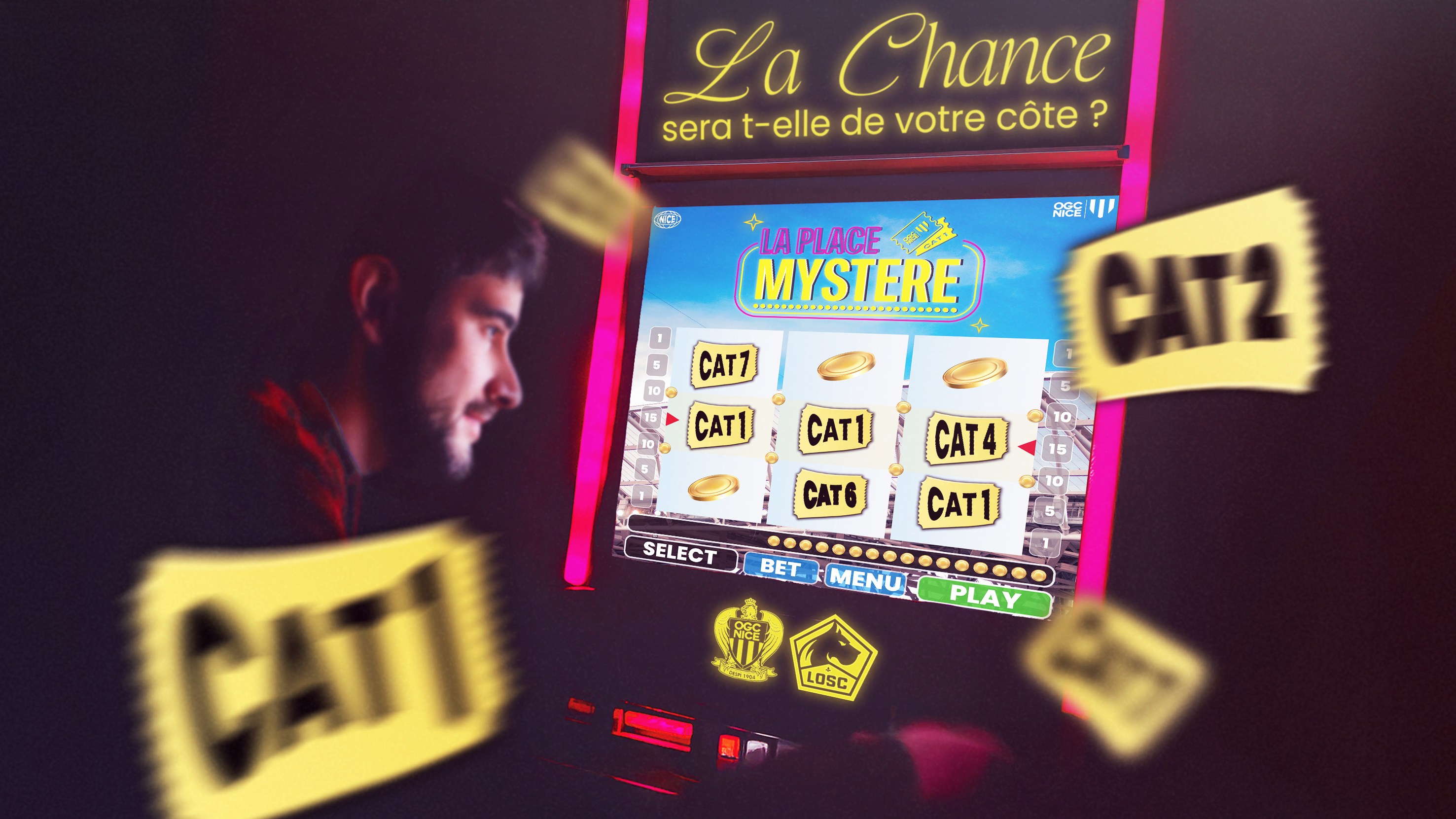 Avide d'une expérience singulière à l'Allianz Riviera ? Laissez-vous tenter par la Place Mystère : réservez votre billet à un prix unique sans en connaître son placement et laissez le mystère s'occuper du reste.